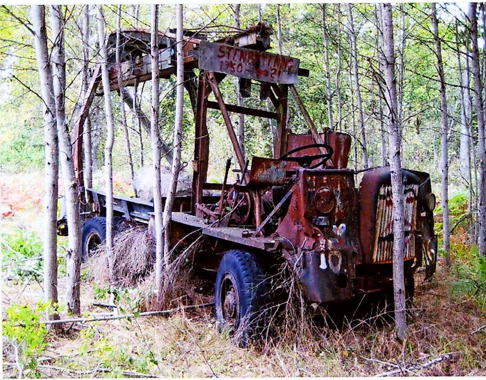 Den har hamnat i skogen, den gamla stenvagnen, efter att ha slutat sin viktiga uppgift att röja de steniga åkrarna från sten. En intensiv stenröjningstid tog sin början efter andra världskriget. Denna stenvagn är från Skruvemåla i södra Småland. Tage Ohlson och en kompis byggde den. Bilen den byggdes på är speciell då den deltagit i kriget i Nordafrika under pansargeneralen Rommel. Den har fyrhjulsdrift vilket gjorde den mycket lämplig som stenvagn.