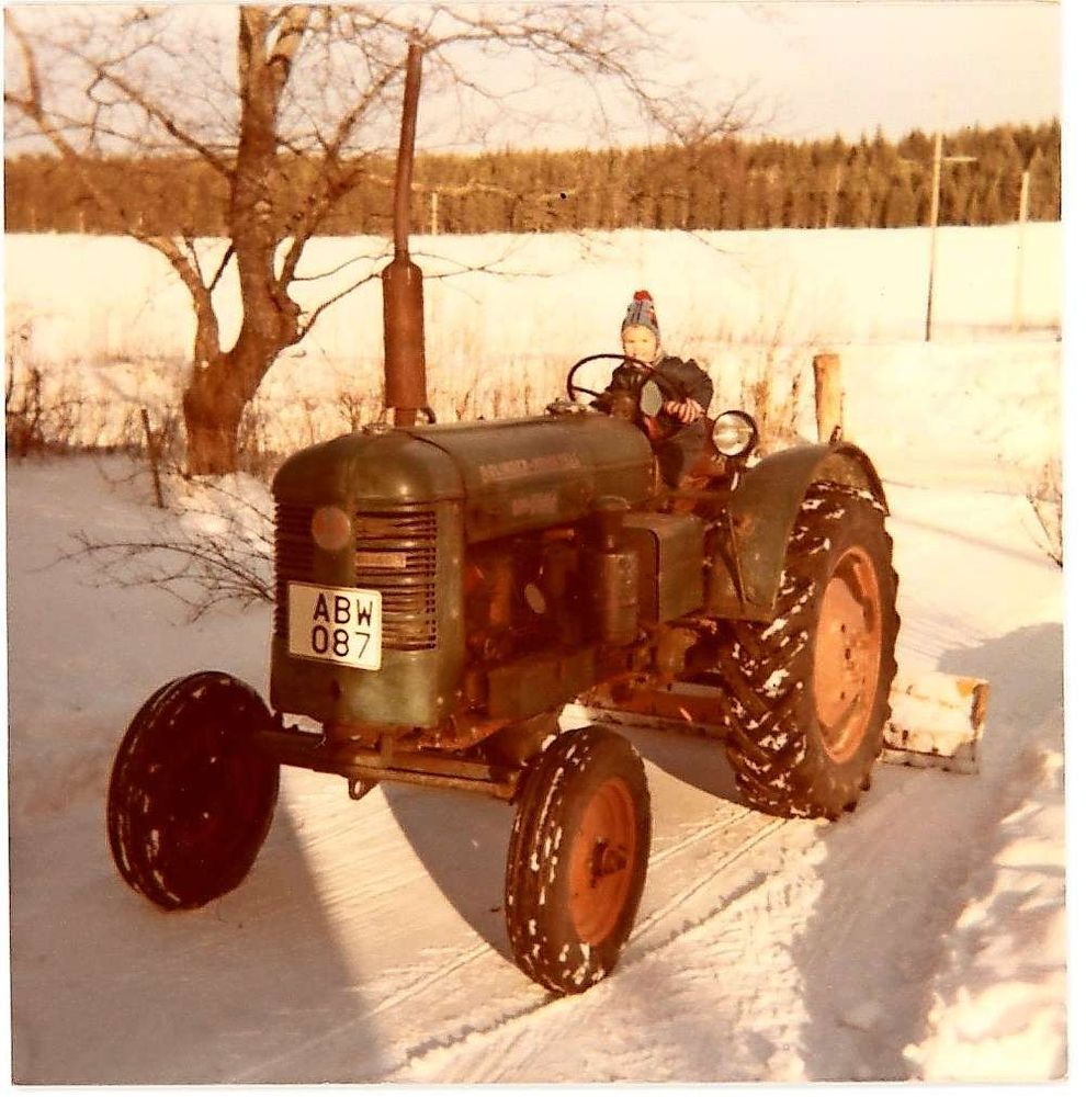 I traktorn sitter mitt barnbarn Charlotte Ohrmér. Hon är pappa Kjells lilla hjälpreda, men hon får nöja sig med att provsitta traktorn och posera för fotografen innan Kjell fortsätter arbetet med att skrapa bort vårvintersnön som fallit vid Salsäter utanför Köping i Västmanland 1979.