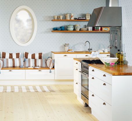 7. Med detaljer som en söt tapet, skålhandtag och träbänkskivor får det här köket, Stina från Vedum, en lantlig och gammeldags känsla. Foto: Vedum.
