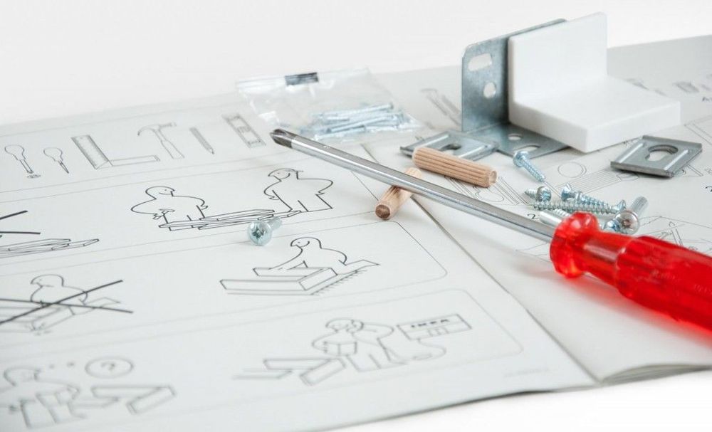 Är ni två som ska montera ihop möblerna? Vilken tur. Det tycker i alla fall de glada monteringsgubbarna i broschyren. Men det behöver inte vara en fördel. Någon av er kommer definitivt skippa broschyren och säga "hur svårt kan det vara". Efter blod, svett och tårar kommer byrån vara färdigmonterad. Att avigsidan på på spånskivan sitter uppåt gör ju inte så mycket. Det ska ändå stå grejer där.