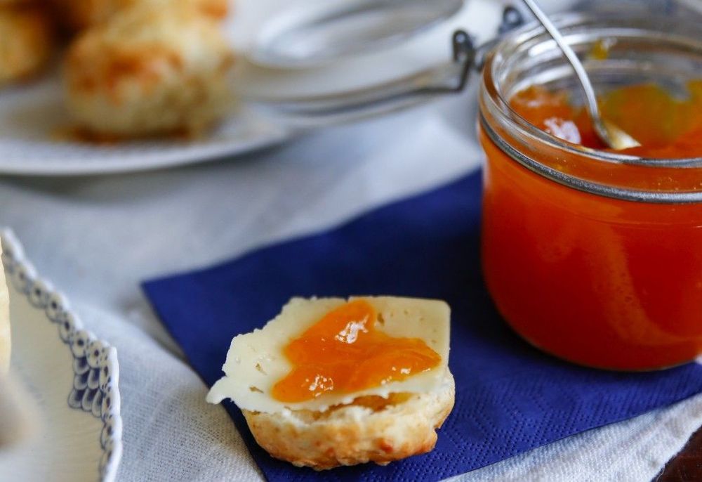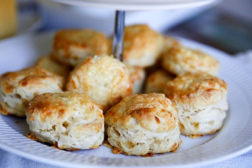 5. Pensla uppvispat ägg och strö lite riven ost ovanpå varje scones.