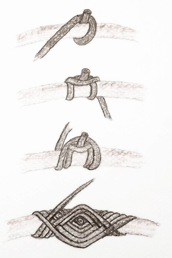 7. Gör en flätad ring lite högre upp på konen enligt samma princip som den nedre.
