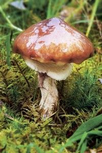Sandsopp är mycket vanlig i tallskog. Blånar när den skärs itu. Typiska fräknar på hatten. Godast om den torkas först.