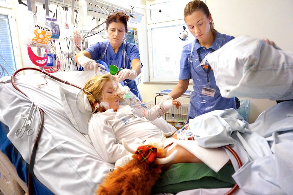Lättade satt Helen och Paul intill dotterns sjukhussäng. Men så vände det blixtsnabbt. Syresättningen i Linns lungor försämrades markant, oavsett vad läkarna gjorde. På operationsavdelningen intuberades Linn (fick en plastslang genom luftvägarna ner till lungorna).