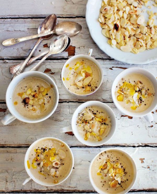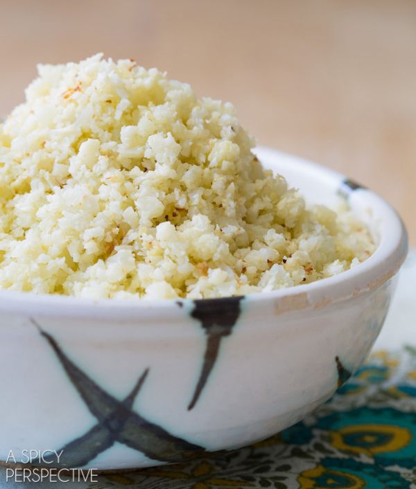 Hacka blomkålen och kör allt i en matberedare. Stek hackad vitlök i olivolja i en stekpanna. Häll i blomkålen och stek tills den blivit gyllenbrun.