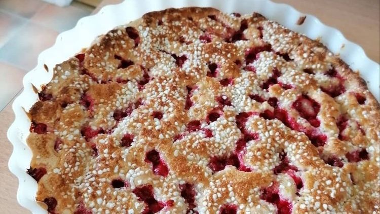 Du rör ihop den på ett nafs och vad du får är en underbart sötsyrlig kaka med knaprig yta, som gör sig mycket bra till en skopa vaniljglass.