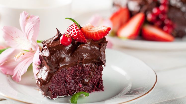 Rivna rödbetor i smeten ger saftighet – och dessutom en läcker röd färg. Med choklad både i och ovanpå kakan blir det en riktigt lyxig fullträff!