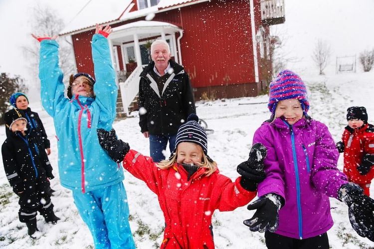 Släktens röda hus ligger som ett pärlband längs byvägen – och inte ett enda står tomt! För alla fyra systrarna med familjer har flyttat hem till Rödålund igen. Och barnen springer fritt mellan gårdarna, precis som i Bullerbyn.