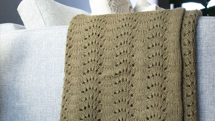 Sticka en fin pläd med ett enkelt spetsmönster. Mönstret går i mjuka vågor fast det skapas av bara ett enda varv med omslag och hoptagningar.