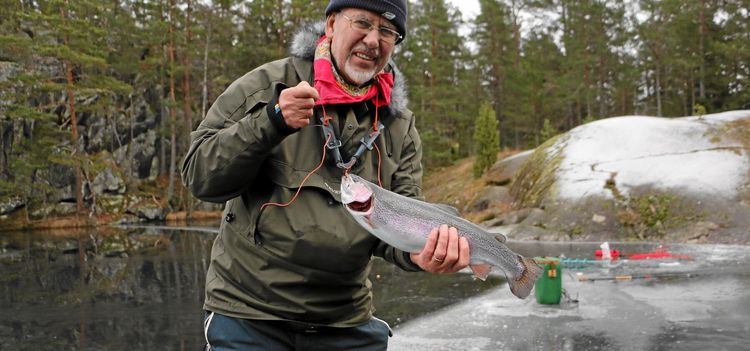 I södra Sverige är is ingen självklarhet. Lands fiskereporter har längtat svårt efter att pimpla regnbåge. Men när han äntligen kom ut tvingades han ta till fikaknepet!