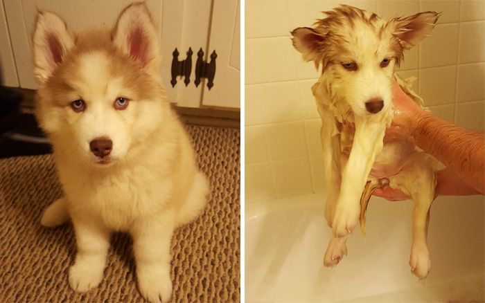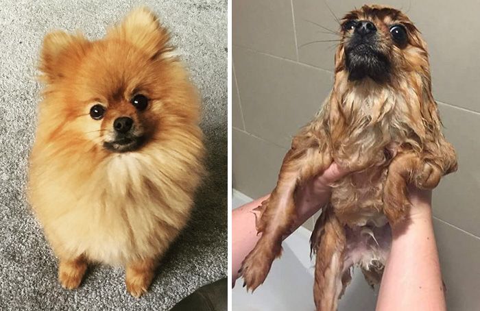 Om du har en hund vet du hur deras utseende förändras före och efter badet. Pälsen går från mjukt och fluffig till genomblöt och tillplattad. Kolla in dessa 12 godningar – är de inte helt fantastiska?