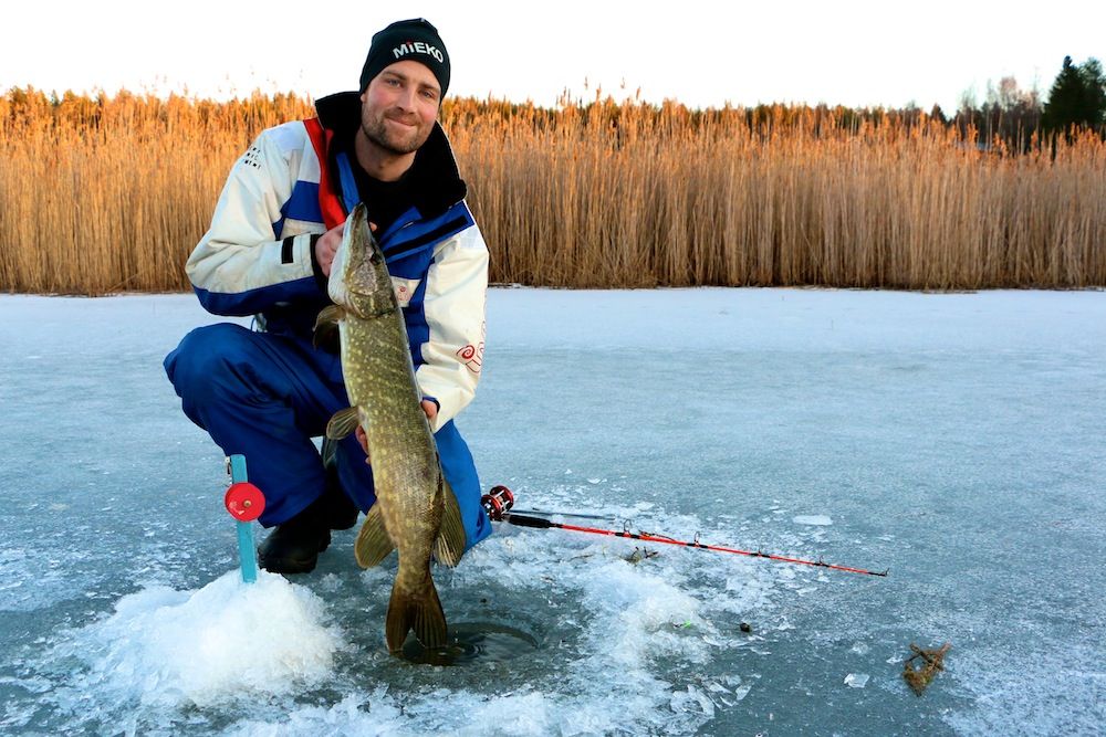 När gäddan tagit betet och vippan fällt springer du mot hålet men tar det lugnt sista biten så att inte gäddan blir skrämd av vibrationerna. Så här hanterar du de två vanligaste scenarierna: