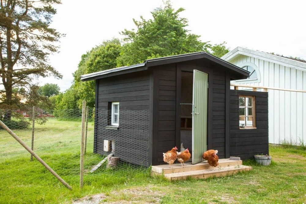 På tomten stod redan en gammal lekstuga som skulle få bli hönshus. Den visade sig vara i mycket sämre skick än de räknat med och av den ursprungliga konstruktionen återstår bara golvet som dessutom har fått ett nytt golv över sig.