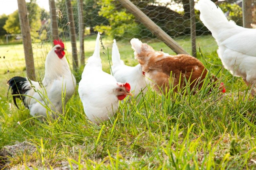 Medan vi pratar trippar flocken runt som trädgårdsprydnader på gräsmattan. Tuppen övervakar sina hönor, håller utkik efter faror och varnar om gladan (rovfågel) syns till.