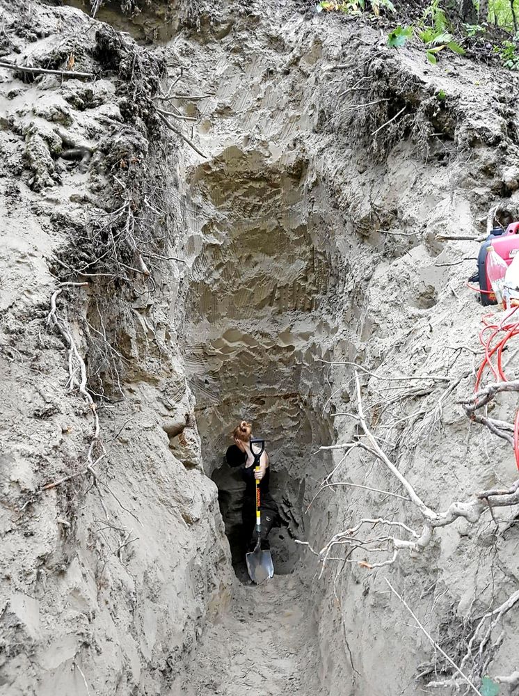 – Vi fick tag i jordborrar och lövblåsar så vi kunde blåsa in syre i grytet, och grävde hela dagen. Vi fick också motorsågar och kunde fälla träd – markägaren sa att vi skulle göra vad vi behövde för att komma fram till Alva, säger Helena.
