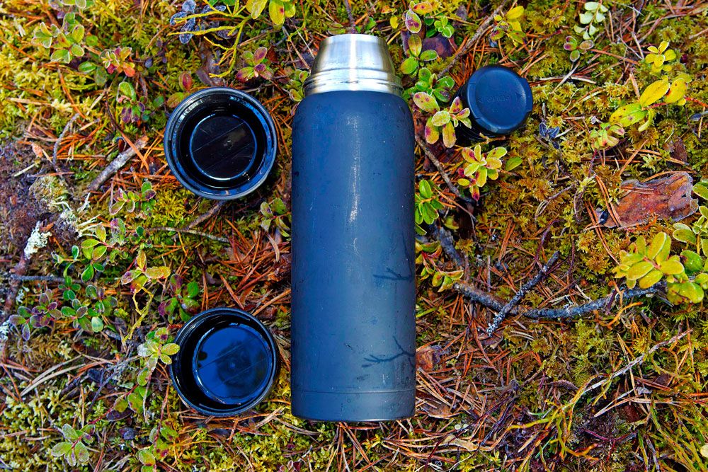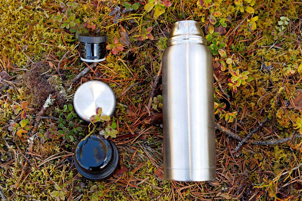 Termosarna fylldes med kokande vatten. Därefter försökte vi efterlikna en lång jaktdag. Vi hällde upp och mätte temperaturen i respektive termosmugg vid samma tidpunkter under dagen. Vätskan i termosarna minskade lika mycket under dagen i alla termosar. Detta gjordes under två dagar i en temperatur på minus 5 grader.