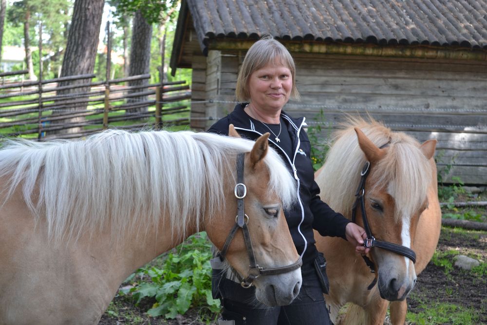Pia Karlsson står i hagen med två gotlandsruss när ett barn frågar vad hästar äter. Förutom skötsel av djuren går jobbet som museibonde till stor del ut på att sprida kunskap. Djurskötaren Jimmy Fredriksson håller med.