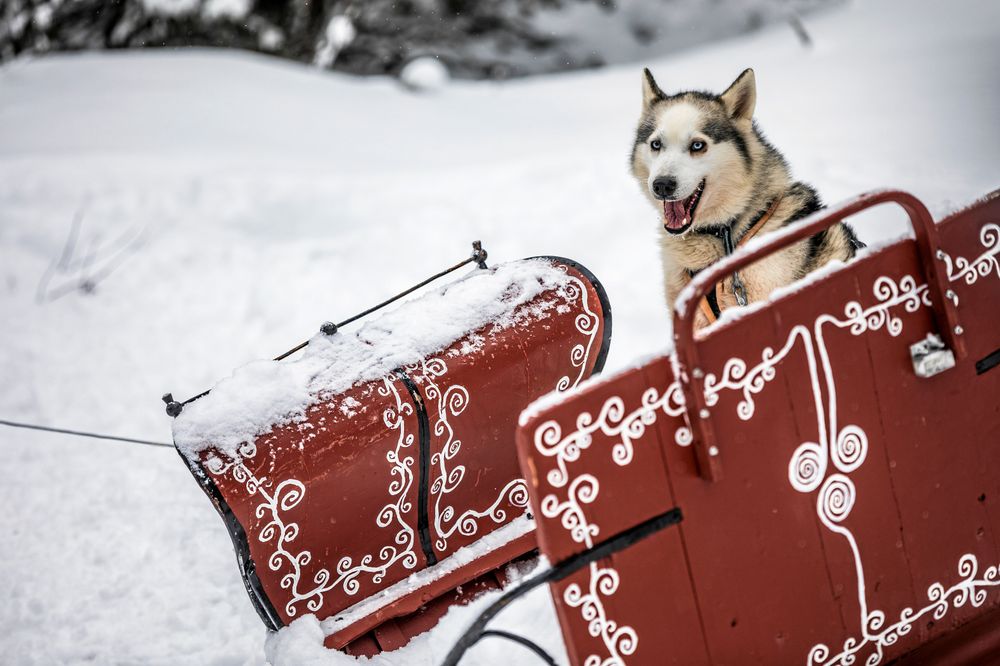 När alla tolv hundar har fått på sig sina selar bär det raskt av bland snötyngda granar och upp mot fjället.