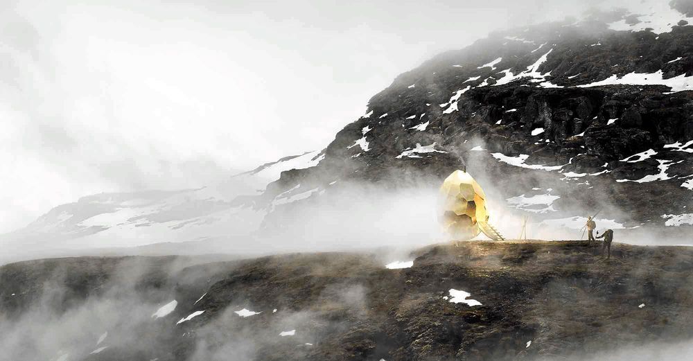 Mitt i den hisnande fjällnaturen har två konstnärer placerat Sveriges förmodligen mest spektakulära bastu – ett ägg i guld som på utsidan speglar sin storslagna omgivning och på insidan har värmande platser för åtta personer.