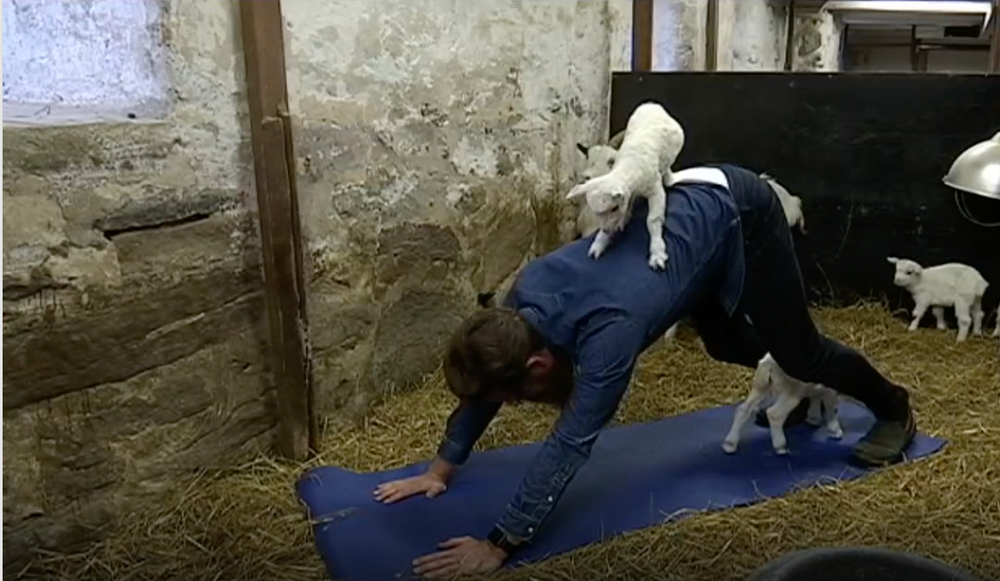 Det är SVT:s Halland som har varit på plats och sett den nya hälsotrenden med egna ögon. Mannen som visar hur det går till heter Henric Nilsson är arbetar på gården. Vad killingen på ryggen heter har tyvärr fallit bort.