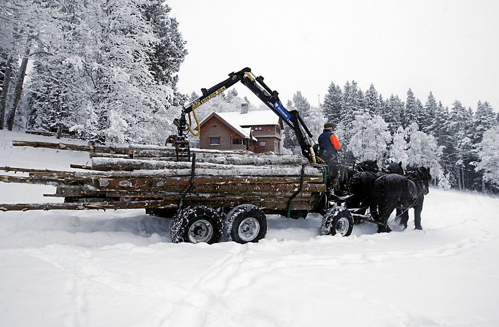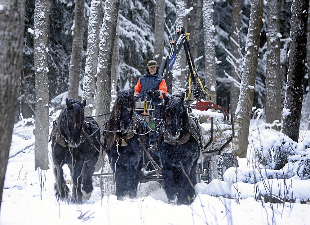 Det är Anders Finnstedt från Dvärsätt, strax utanför Östersund, som äger hästarna och han tar på sig avverkningar där det är känslig natur.