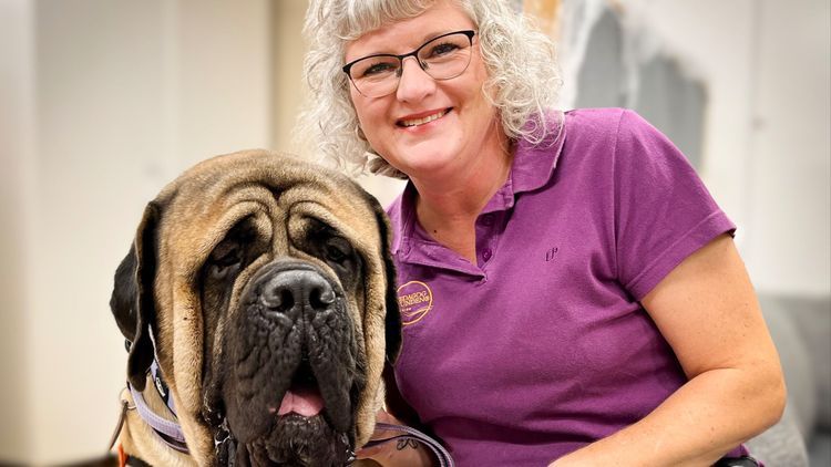 Han väger 92 kilo och ser lite butter ut, men hunden Bosse sprider både glädje och lugn bland elever med särskilda behov!