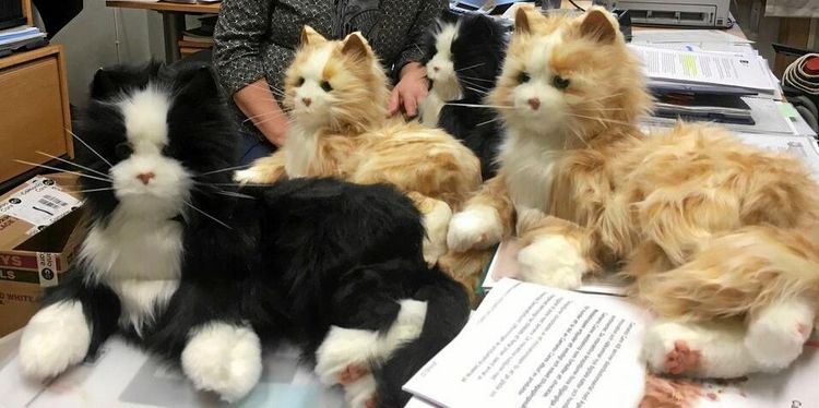 På äldreboendet Blomstergården i Krokoms kommun har man 13 robotkatter som hjälper de gamla att känna sig trygga.