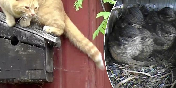De små rödstjärtsungarna får kämpa mot katten Elvis inne i fågelholken. Och allt fångas på film av Håkan Gustavsson.