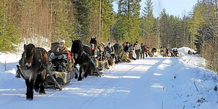 Både hästarna och människorna var glada! Äntligen kunde de återuppta den gamla traditionen med slädkörning till marknaden i Röros! Och många nyfikna stod längs vägen.