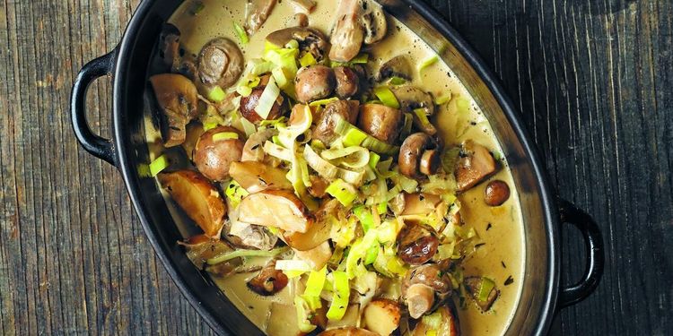 Svamp och jordärtskocka är en fin kombination som passar bra i en gryta. Med potatisstrimlor därtill så blir det extra gott och många olika texturer som lyfter rätten. Perfekt för en finlunch eller en vardagsmiddag.