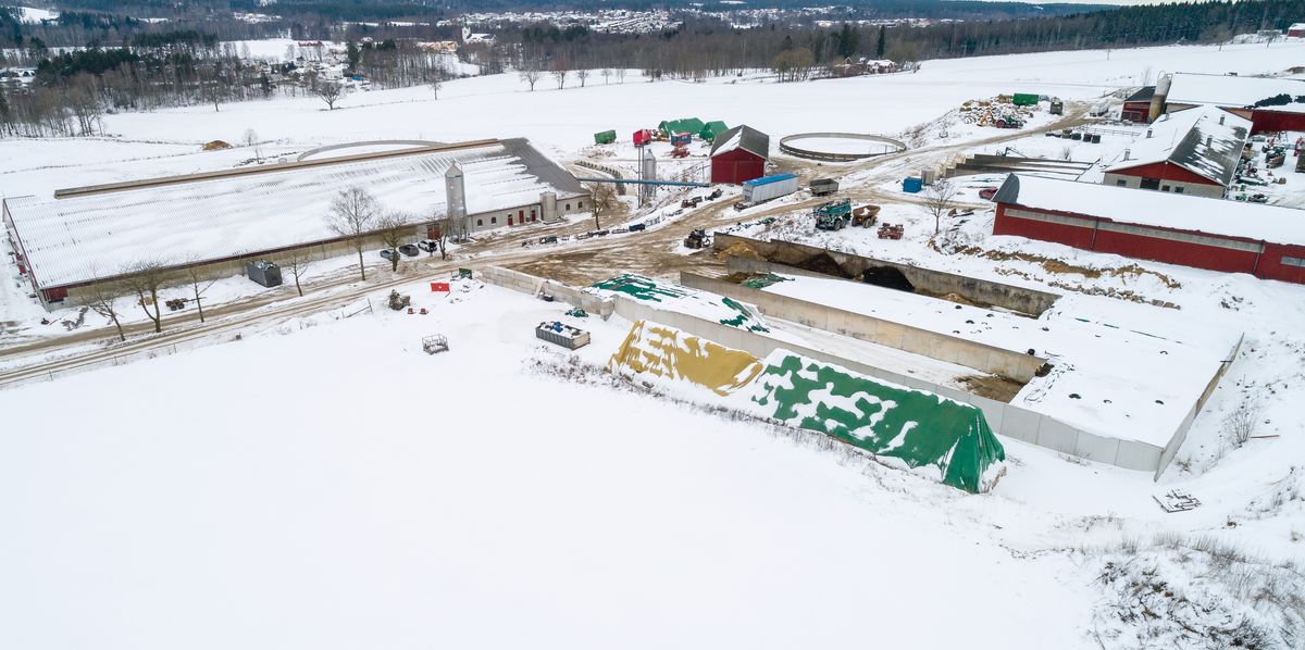 Gödselhantering: Tre gödselbrunnar på gården som fylls underifrån, två satellitbrunnar. Total volym flytgödsel 9 600 kubikmeter. Stabila svämtäcken som bryts endast i samband med spridning, cirka tre gånger per år. 730 kubikmeter djupströgödsel. Tar även emot 440 ton hästgödsel per år.