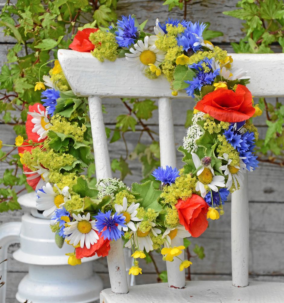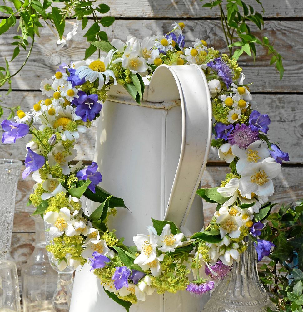 Ingen tid på året är så vacker och full av förväntan som midsommar. Ängar och dikesrenar står i sitt finaste flor och inbjuder till att plocka de vackraste blomstren. Av dem binder du enkelt en vacker krans. Binder du med najtråd håller kransen genom dans och lek, och står sig hela natten. Låt blommorna dra åt sig rejält med vatten först så håller kransen lite längre.