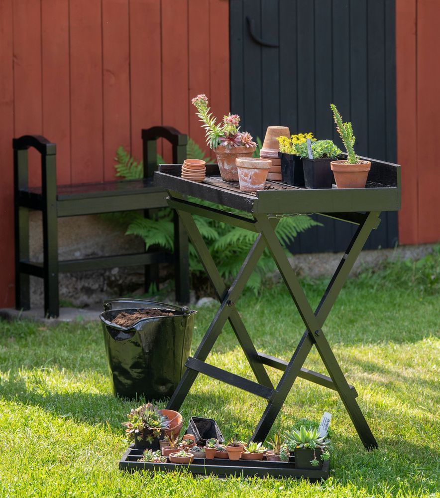 Ett hopvikbart planteringsbord är praktiskt och tar minimalt med plats.