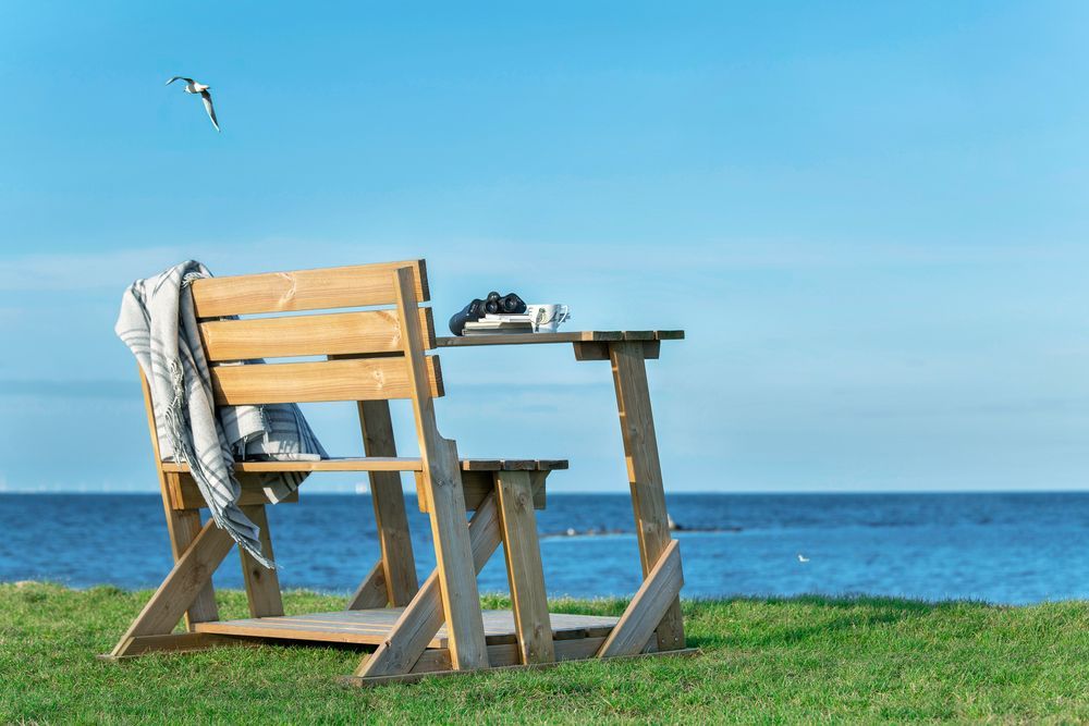Utsiktsbänken, konstruerad med ”allt i ett”, byggdes för att stå vid en liten sjö på landet.