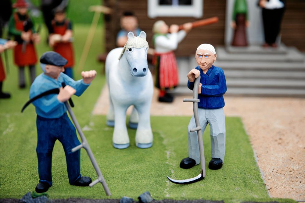 Minnen, fantasi och skicklighet har med åren skapat hela miljöer med människor och djur. Med jämna mellanrum ställs de ut så att allmänheten får se. Nu senast på stadsbiblioteket i Falun.