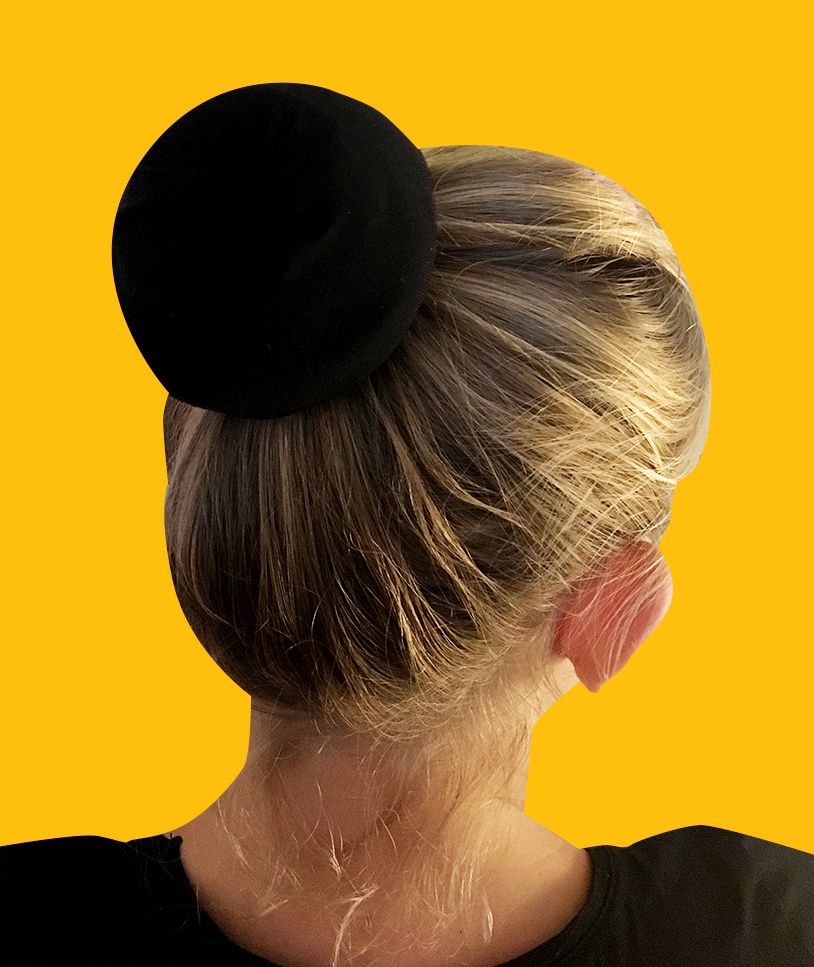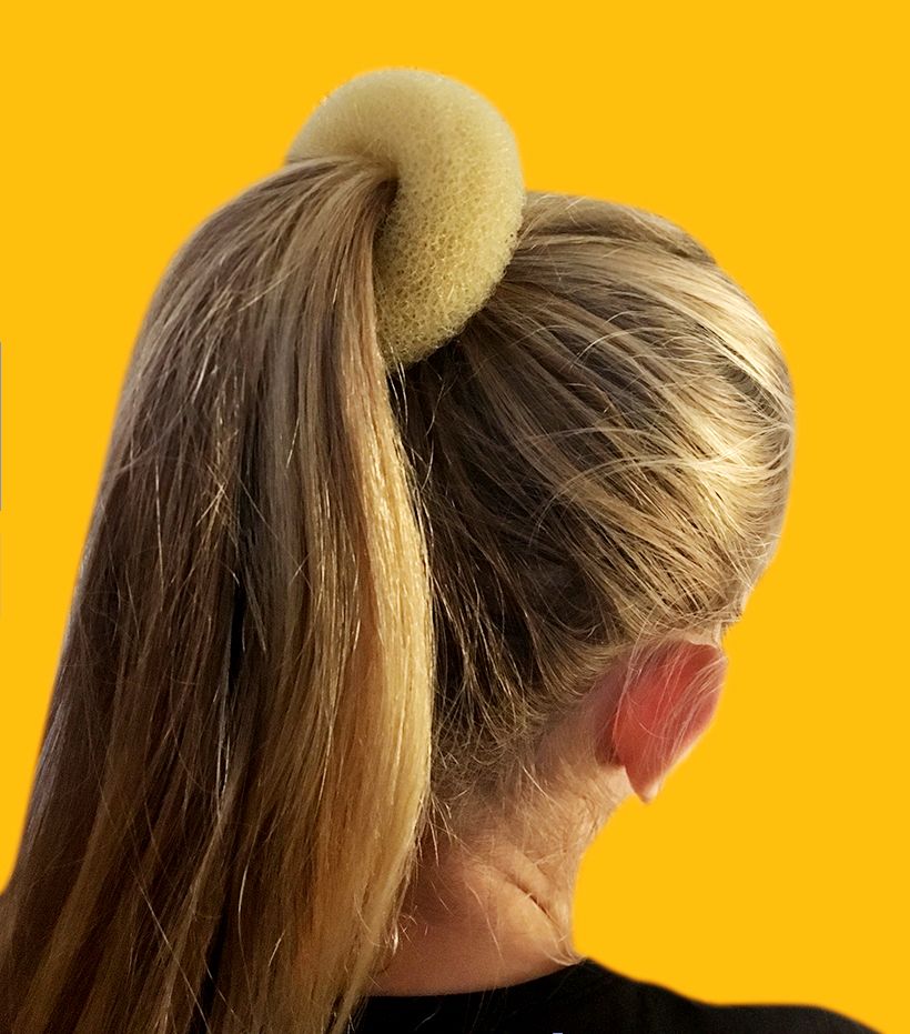 Du behöver inte ha jättelångt hår för att använda dig av en donut, se till att ha en massa hårnålar bara så kan du fästa den ändå. Hårdonuts finns på de flesta varuhus och butiker där man säljer accessoarer.