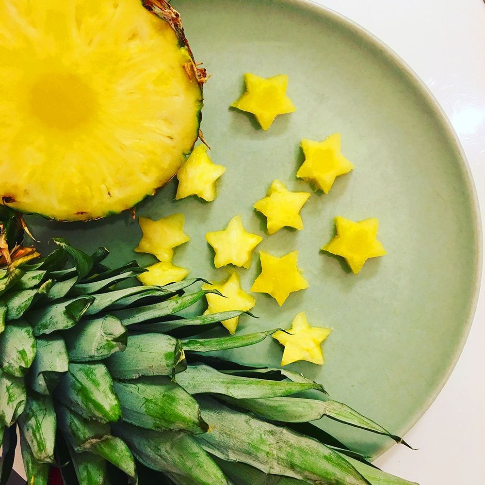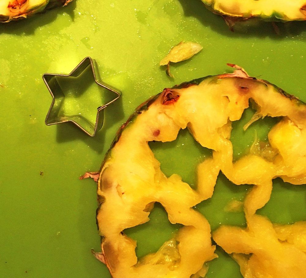 Skär ca 1 cm tjock skiva av ananasen och stansa ut fina små stjärnor.