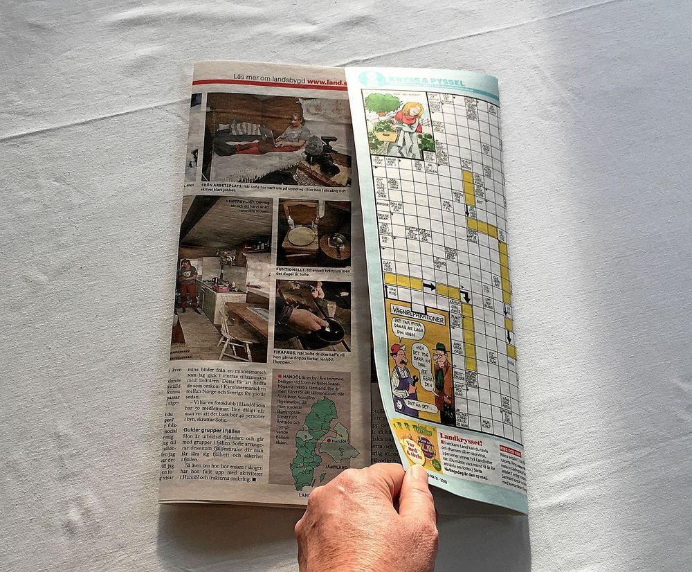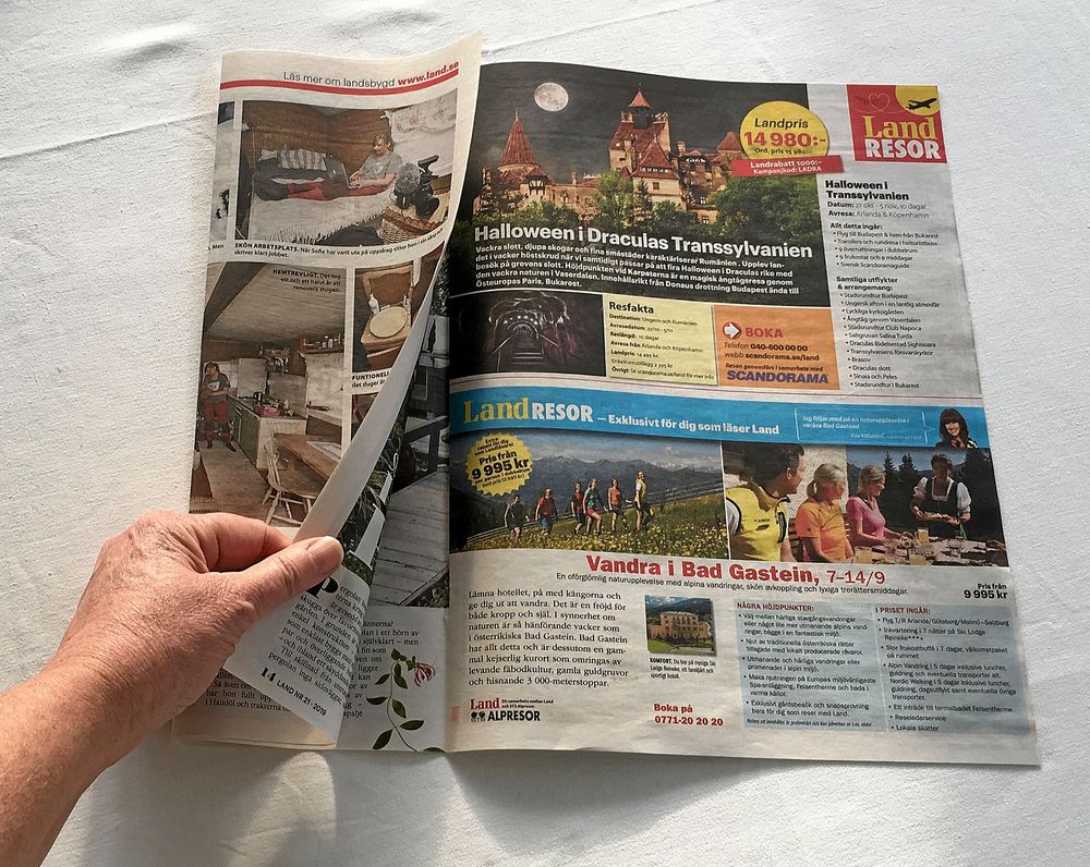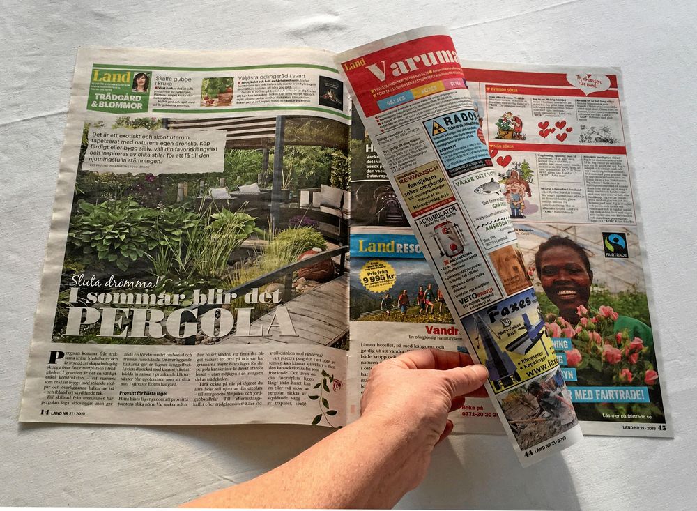 Byt ut plasten mot papper – och börja med ett exemplar av Land! Påsen är lätt att göra och väger nästan ingenting. Trots det blir den stadig eftersom den görs i dubbelt papper, två uppslag Land åt gången.