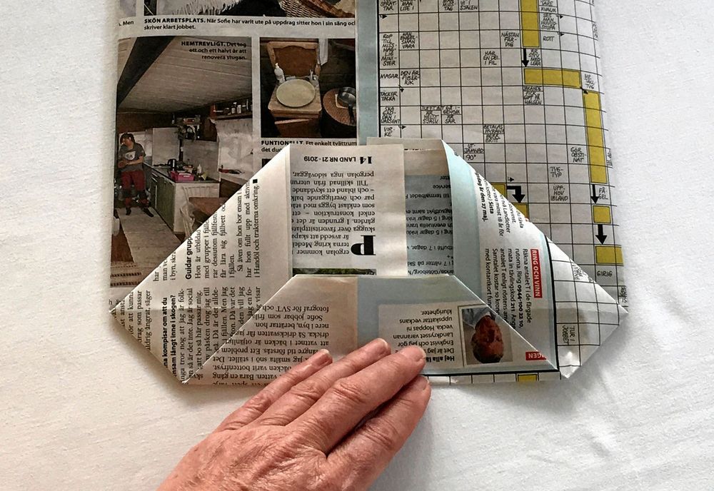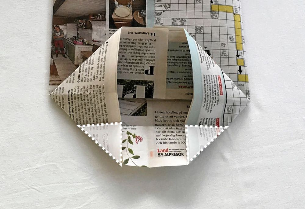 4. Vik upp bottendelen cirka 10 centimeter och stryk ordentligt över den vikta kanten med fingrarna så att viket blir vasst.