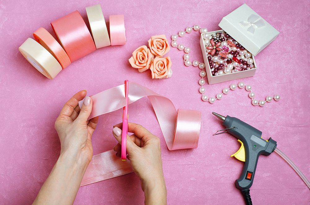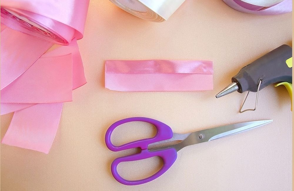 Material: Band av satin, tändare, sax, limpistol.