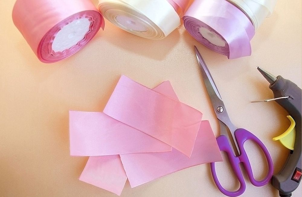 Bitarna till varje blomblad ska vara lite mer än dubbelt så långa som bandet är brett. Ett 38 millimeter brett band klipps i 9 centimeters bitar, ett band på 70 millimeter klipps i 15 centimeter och så vidare. Använd tändaren för att smälta de avklippta kanterna så att bandet inte remsar sig.