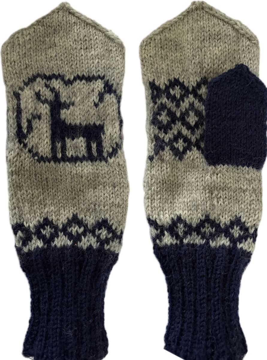 - Älgarna på vanten är de som finns på hällmålningen på Korpberget, Sveriges nordligaste hällmålningar. De lär ha tillkommit under jägarstenålder i Norrland.