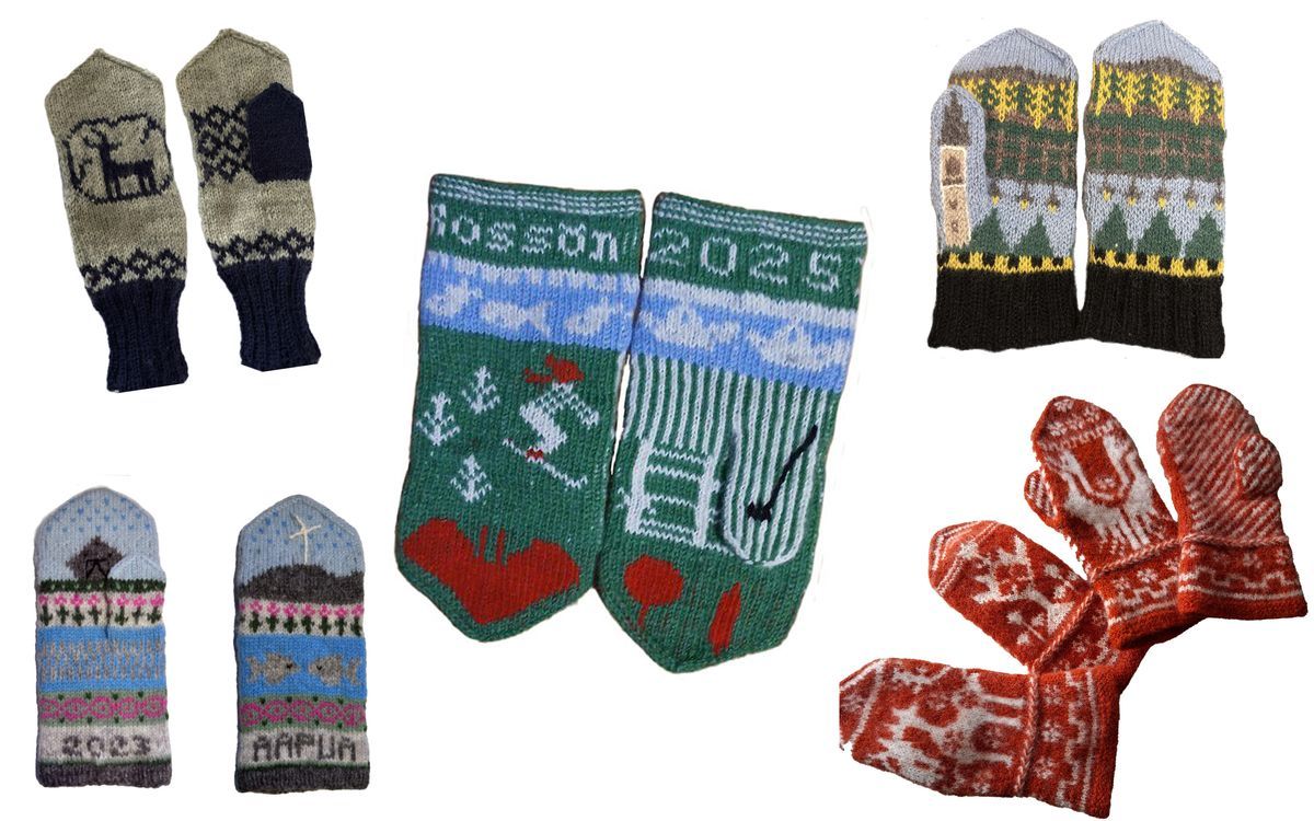 En gång i veckan träffas ett gäng kvinnor i Rossön, en by i Ångermanland, för att sticka. De kallar sig ”Garningarna”, berättar Lena Andersson: ”De har gemensamt kommit fram med idén till motiven på vanten som ska representera byn. Utifrån dessa idéer har Inga-Lena Åkerstedt skapat mönstret till den vackra vanten. Hon har även stickat det första paret.”