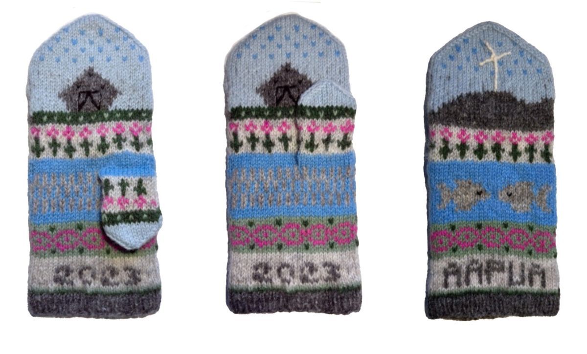 - Överst på vanten finns toppen av en kåta. Även trianglarna på insidan symboliserar samernas kåtor.”