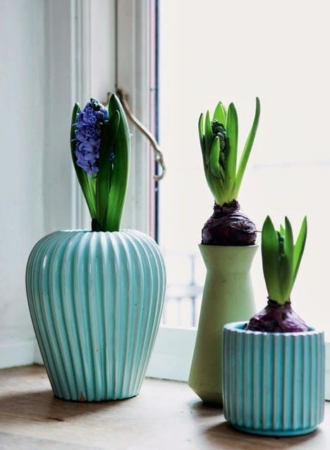 Hyacinten är krusigt snygg, en perfekt kontrast till stilrena vaser och krukor från 1950- och 1960-talen.