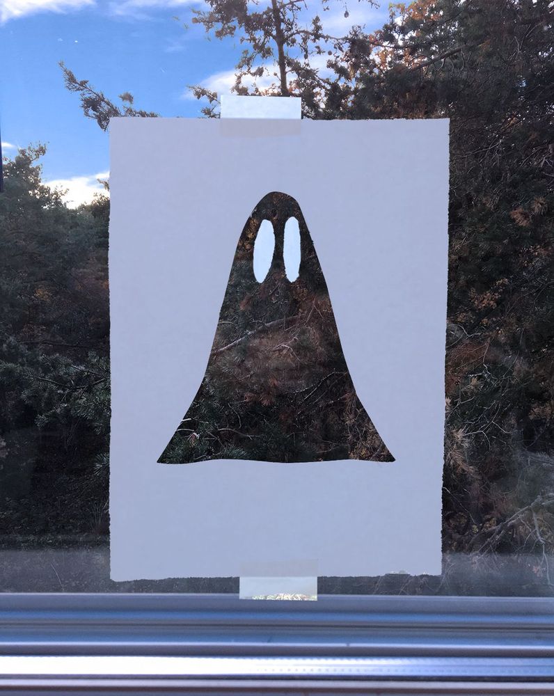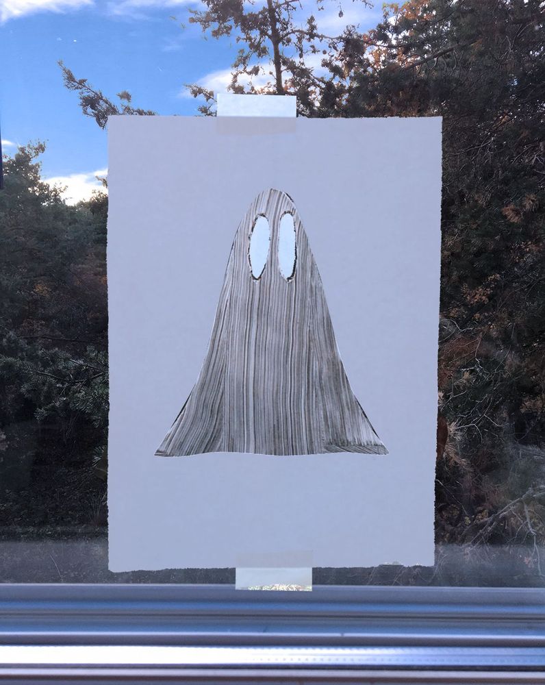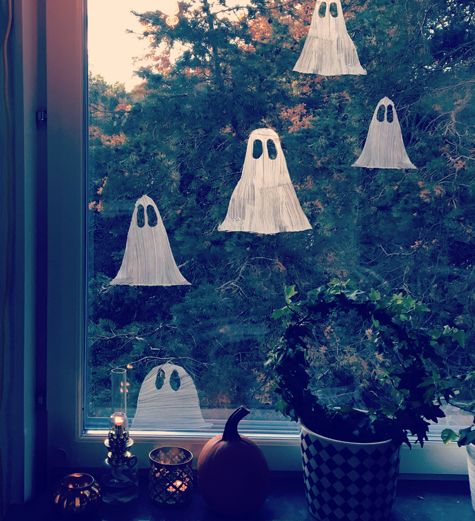 4. Tejpa upp den på fönstret och gör ögon av papperstejpen