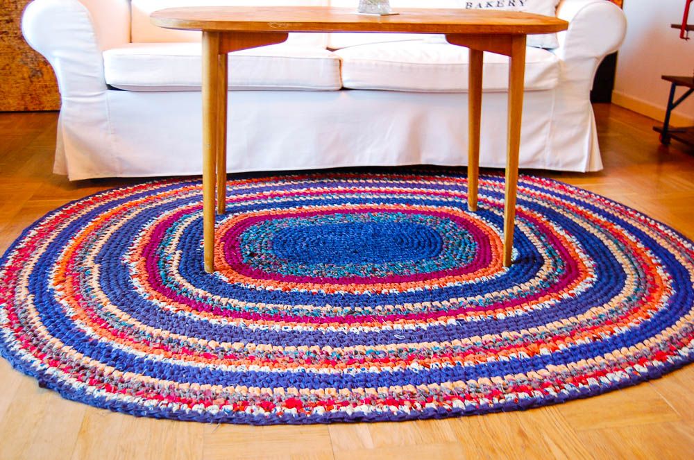 Gillar du annorlunda tyger är det perfekt att handla på loppis. Dessutom kan du använda gamla gardiner, lakan eller kläder för att virka eller väva mattor och andra roliga saker. Mattan på bilden är virkad av ett gäng gardiner och lakan. Av en t-shirt gör du garn hur lätt som helst, här finns en tutorial!