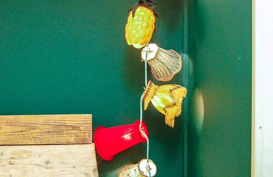 Udda lampskärmar finns det en uppsjö av på loppisar. Häng dem på en ljusslinga eller byt ut en tråkig lampskärm du har hemma. Om du inte är nöjd med färgen så kan du med en minimal insats fixa till dem, prova att måla, gör decoupage med servetter eller sy fast en fin bollfrans. Här hittar du beskrivingen av ljusslingan på bilden.