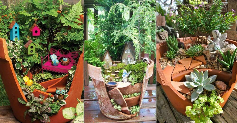 Det spelar ingen roll om de är trasiga, du kan alltid bygga små miniträdgårdar av krukorna! Dessutom kan du passa på att fynda andra miniatyrsaker till till lilla trädgård. Här finns fler tips!