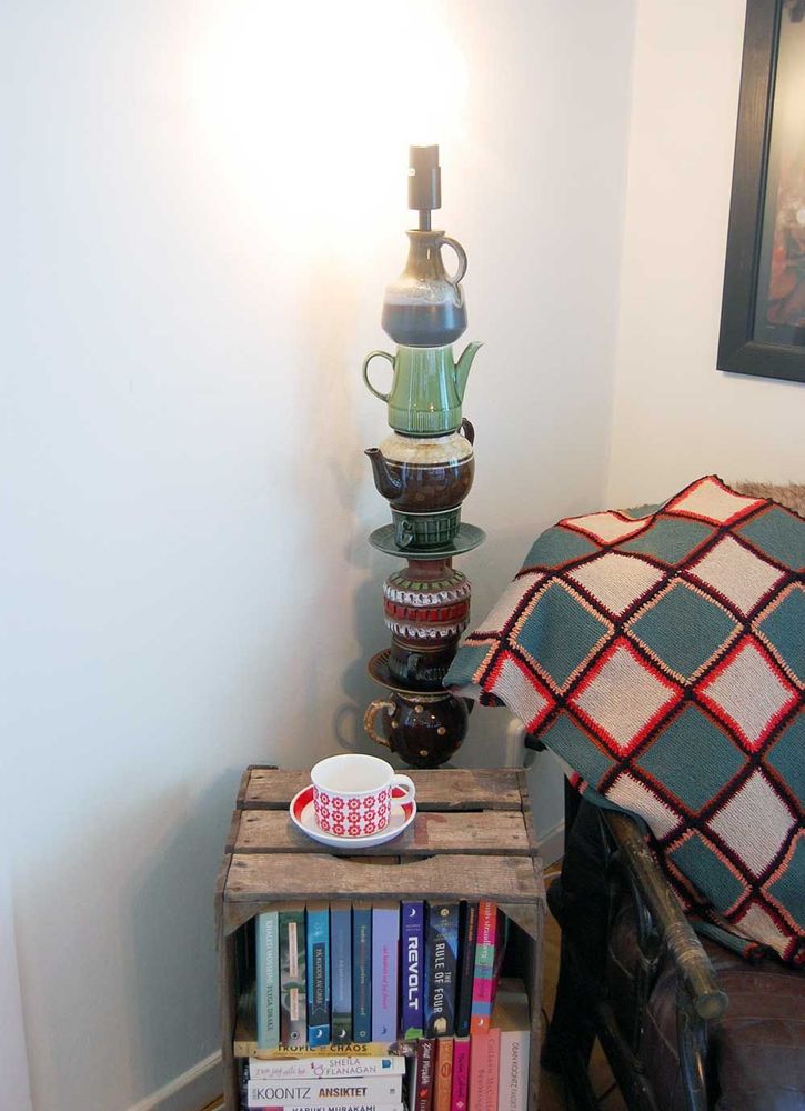 Det behöver inte stå Gustavsberg, Rörstrand eller något annat flådigt på porslinet för att det ska vara fint. Ta en titt och köp om du hittar något du gillar. Använd som minikruka, gör om en kaffekopp till liten taklampa eller bygg en golvlampa av tekannor och koppar. Här kan du läsa om hur man gör lampan på bilden.
